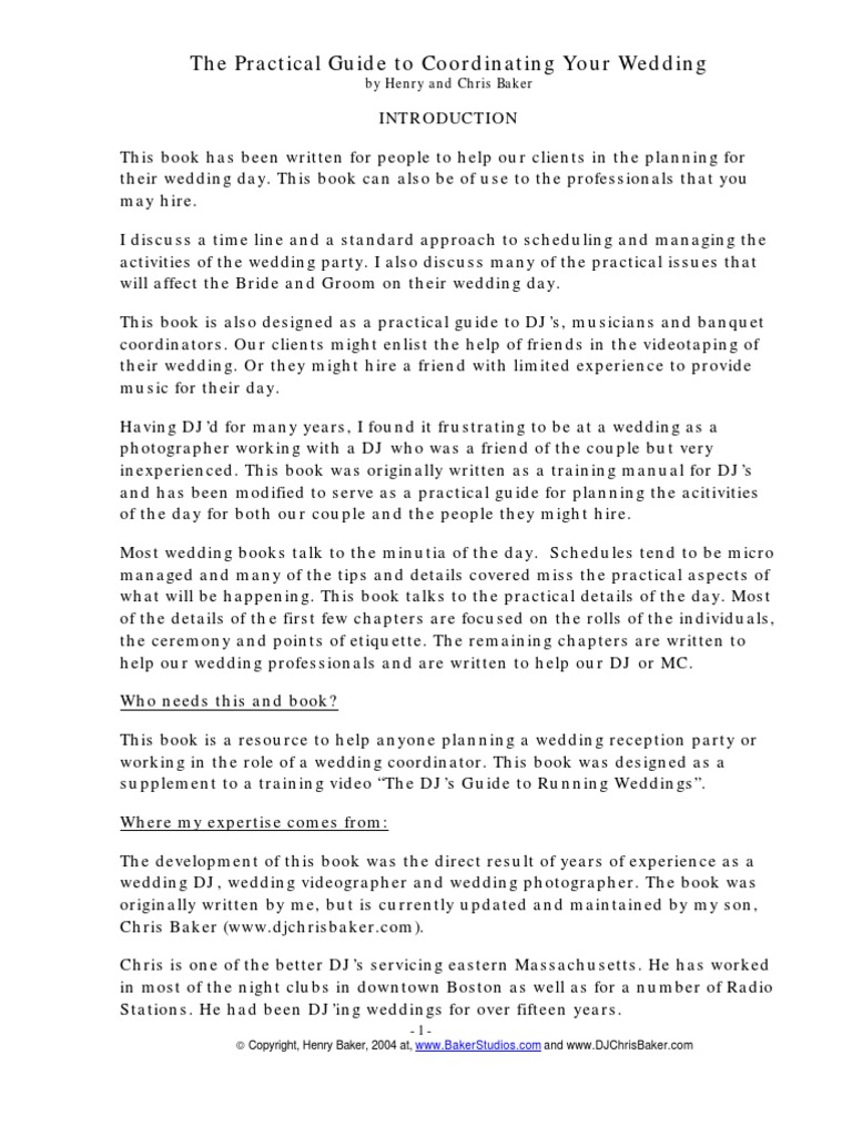 help our wedding professionals and are written to help our DJ or MC.