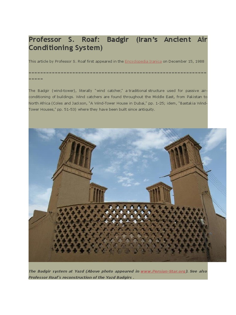 S. Roaf, Windcatchers, in Living with the Desert, ed. E. Beazley and M. Harverson, Aris and