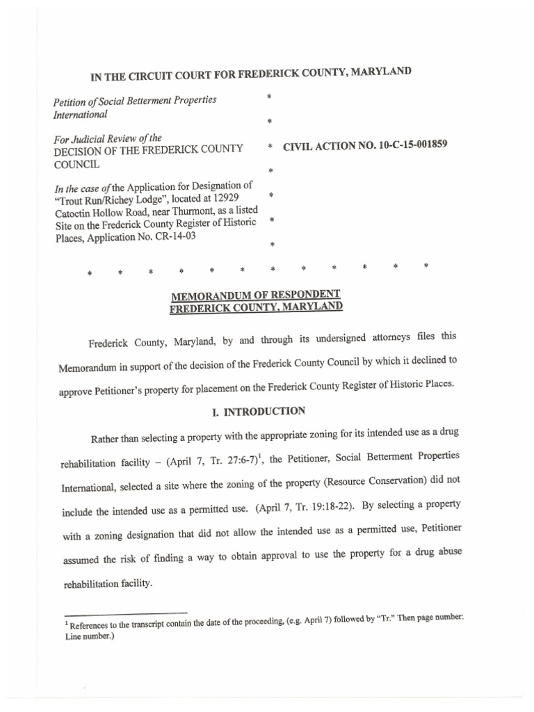 Frederick County's response to Scientology's zoning appeal in Maryland