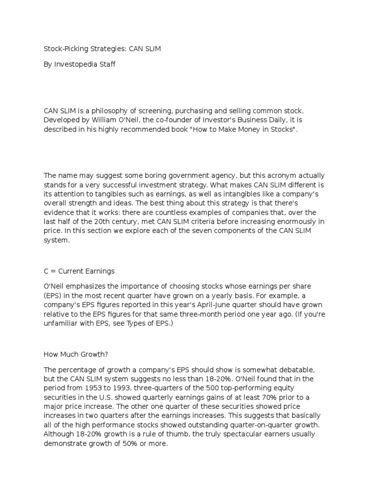 Stock-Picking Strategies: CAN SLIM