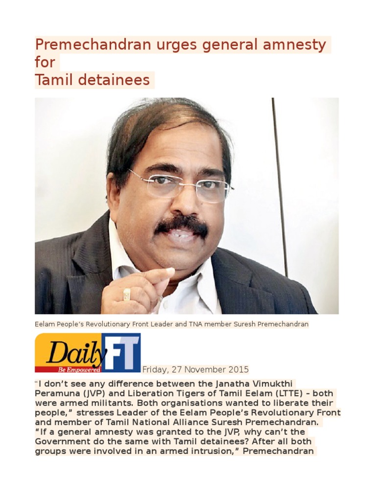 Eelam Peoples Revolutionary Front Leader and TNA member Suresh Premechandran