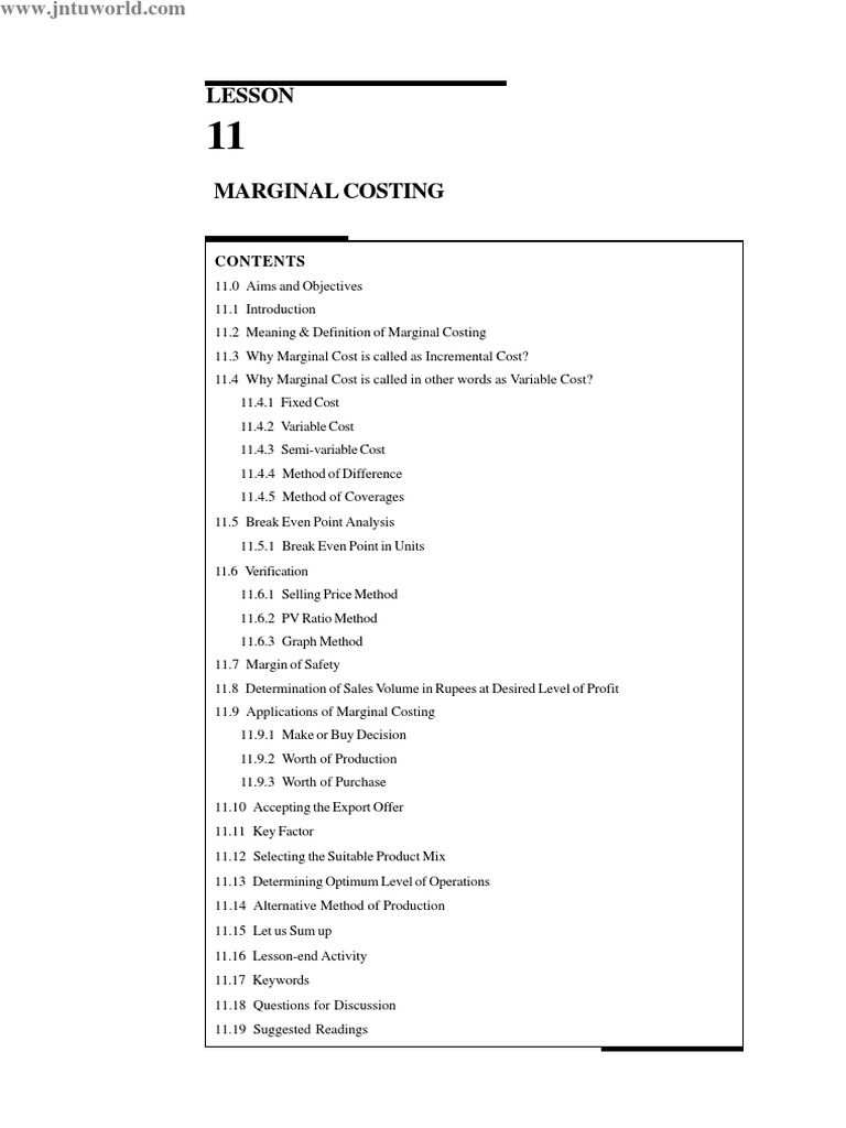 In this lesson we shall discuss about marginal costing. After going through this lesson