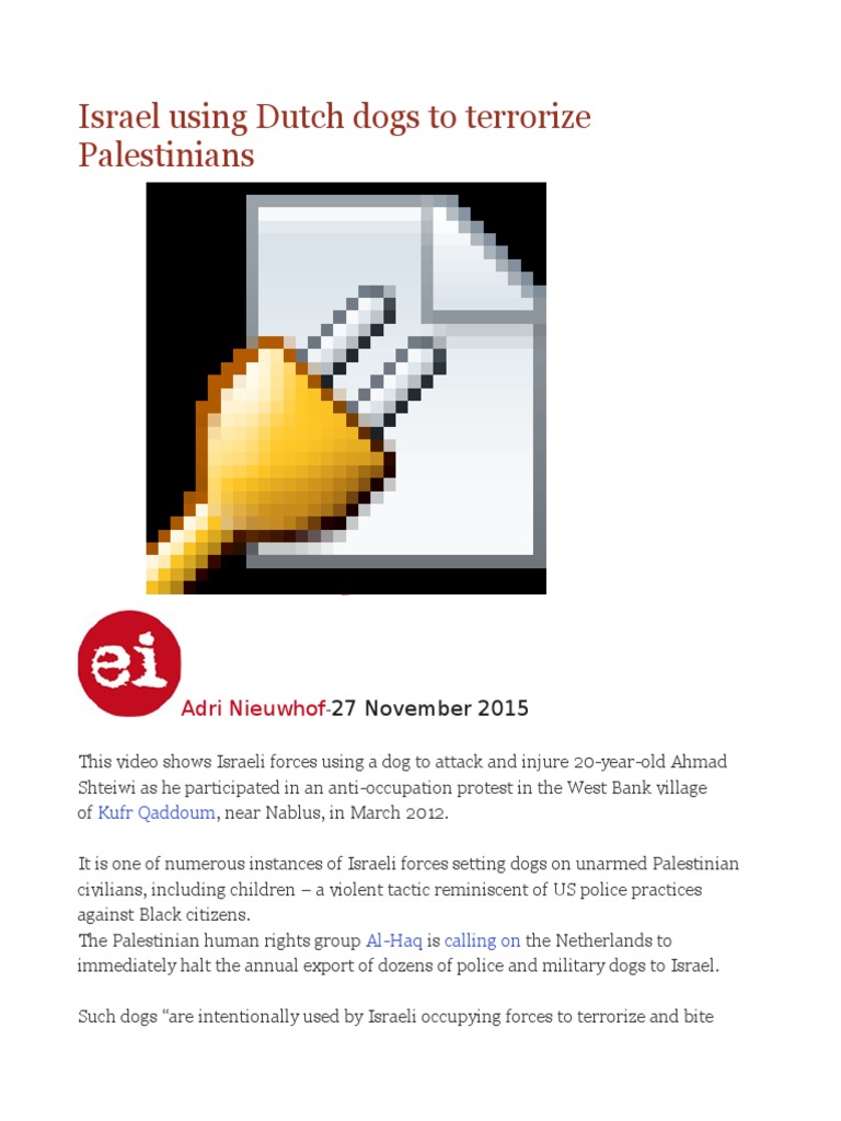 Police dogs trained in the Netherlands to bite civilians have been exported to Israel for