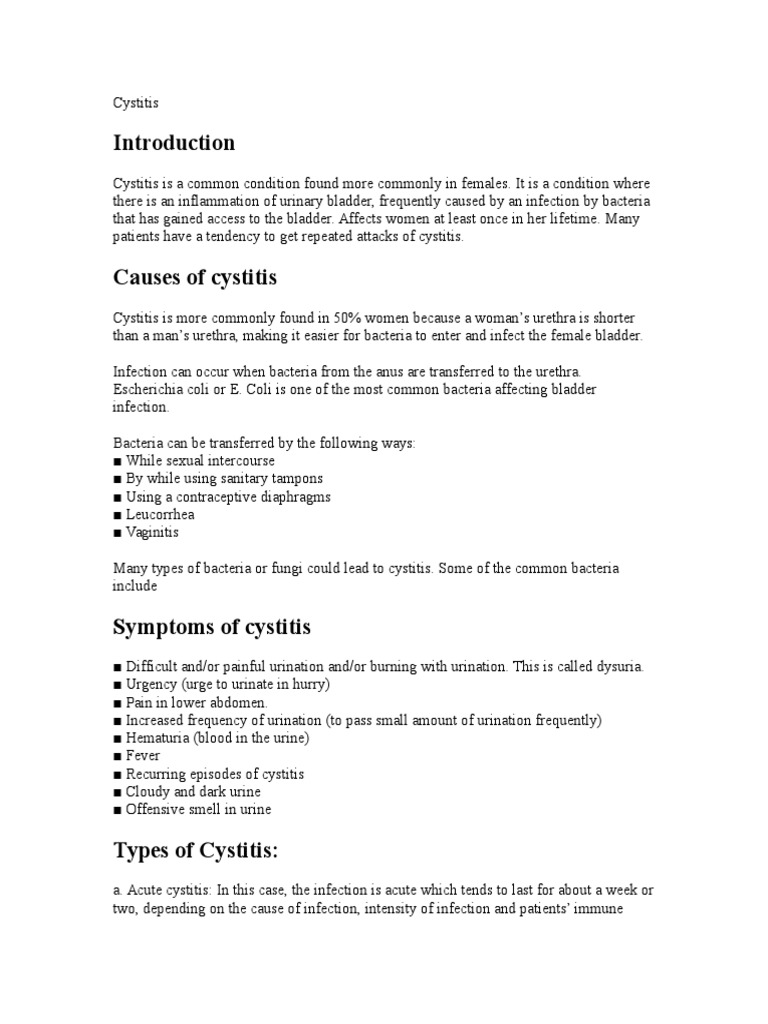 a. Acute cystitis: In this case, the infection is acute which tends to last for about a week or