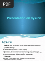 Difficult and/or painful urination and/or burning with urination. This is called dysuria.