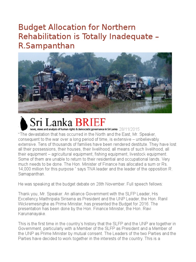 (Speech made by The Hon. Rajavarothiam Sampanthan Leader of the Opposition)