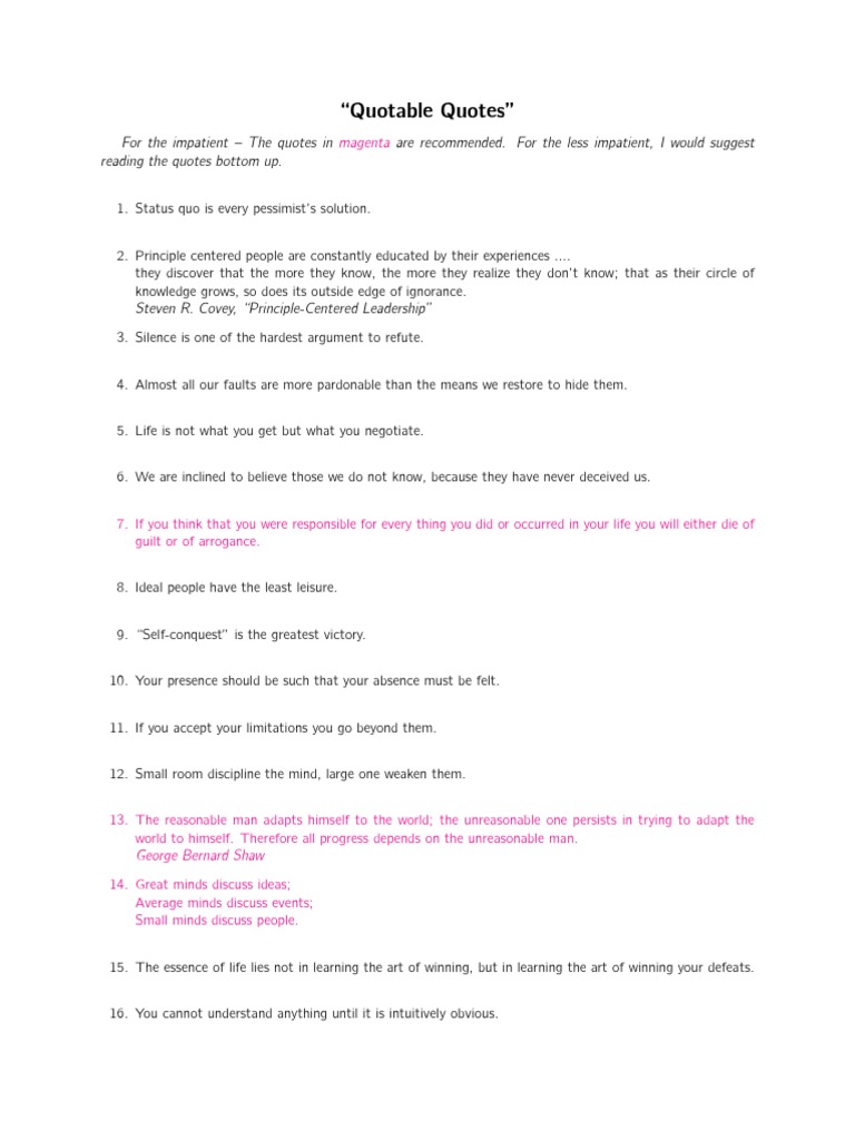 For the impatient The quotes in magenta are recommended. For the less impatient, I would suggest