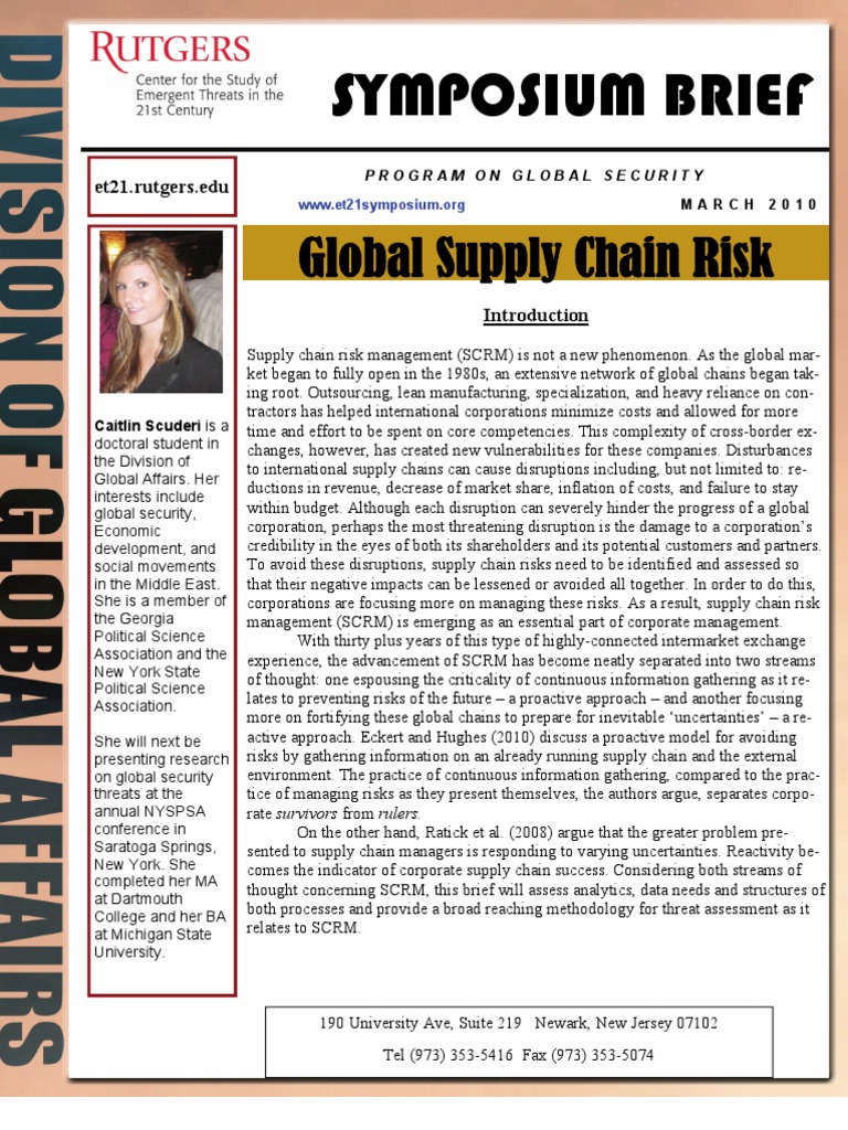 The Rutgers Center for the Study of Emergent Threats in the 21st Century (ET21) is an interdis-