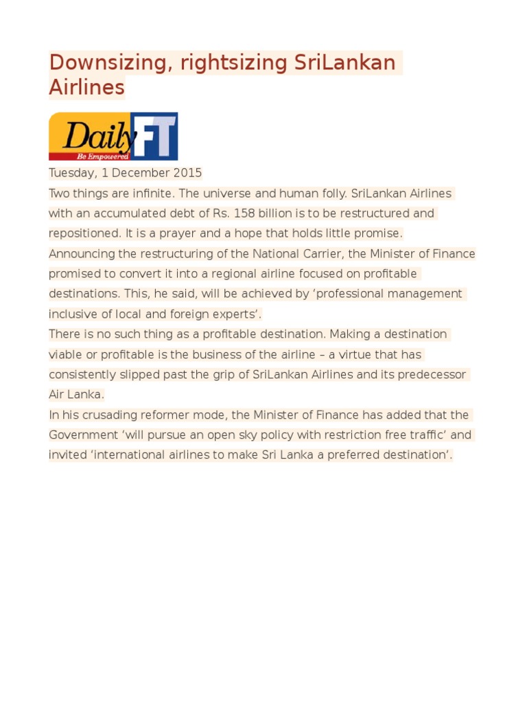 commercial aircraft in the market. Sri Lankan has ordered four of them but