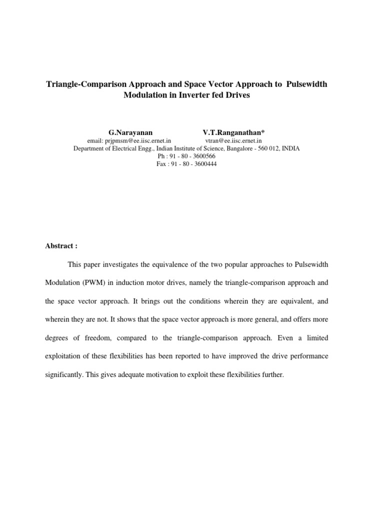 Modulation (PWM) in induction motor drives, namely the triangle-comparison approach and