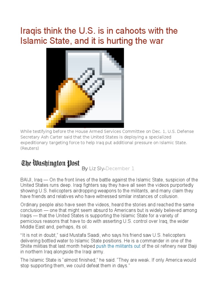 Iraqis that the United States is supporting the Islamic State for a variety of