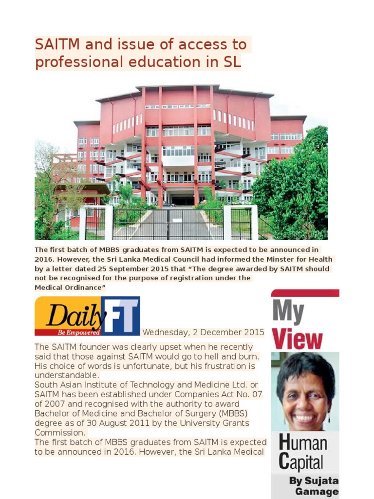2015 that The degree awarded by SAITM should not be recognised for the