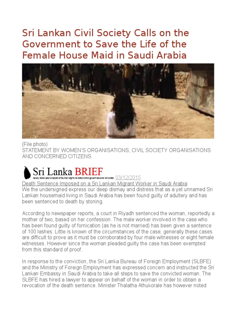 revoke the death sentence and ensure the migrant workers safe return to Sri Lanka.