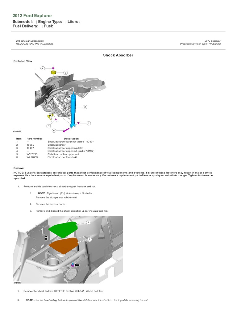 Suspension fasteners are critical parts that affect performance of vital components and systems. Failure of these fasteners may result in major service expense. Use the same or equivalent parts if replacement is necessary.