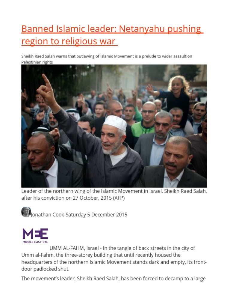 According to Salah, Netanyahu has tried to take aim not just at his movement, but