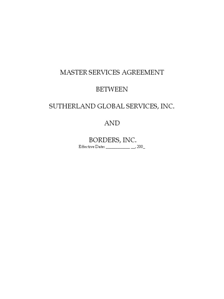 Master Services Agreement Between Sutherland Global Services, Inc. AND Borders, Inc