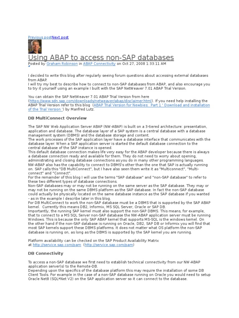 For DB MultiConnect to work the non-SAP database must be a DBMS that is supported by the SAP ABAP