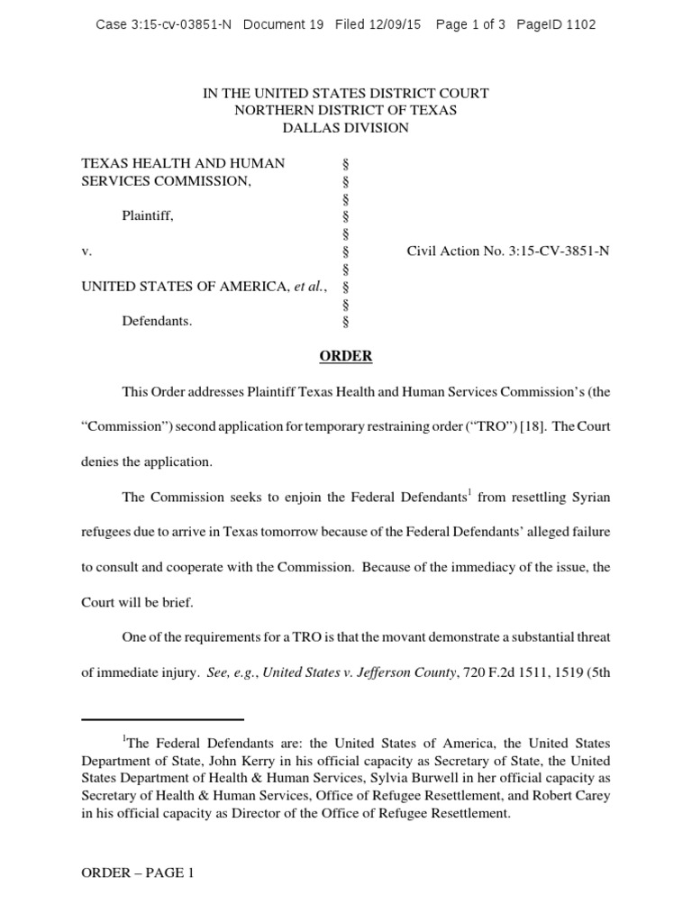 Case 3:15-cv-03851-N Document 19 Filed 12/09/15 Page 1 of 3 PageID 1102
