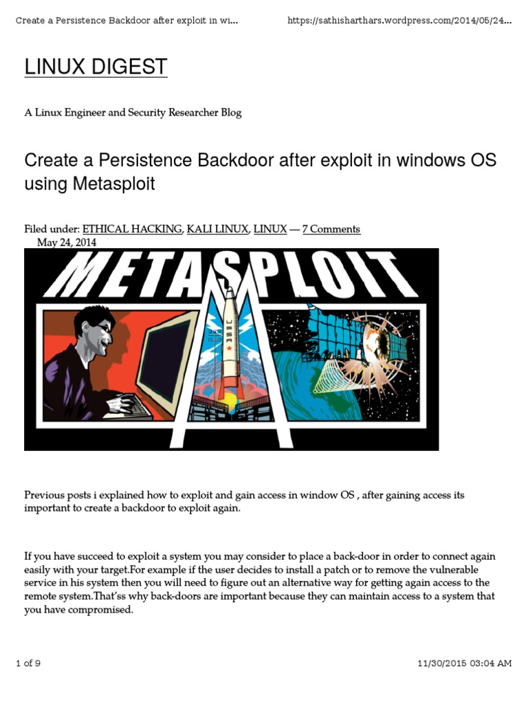 So , In this article we will look at the persistent backdoor of Metasploit Framework which is actually a