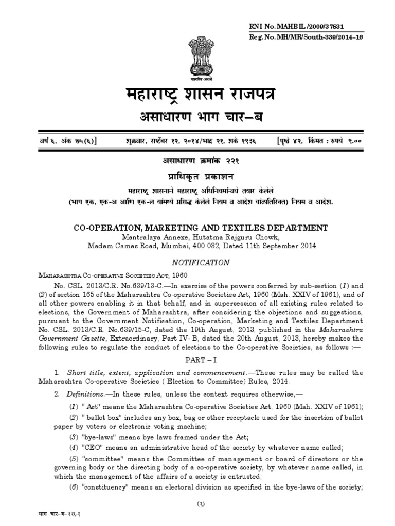 Maharashtra Co-operative Societies ( Election to Committee) Rules, 2014.