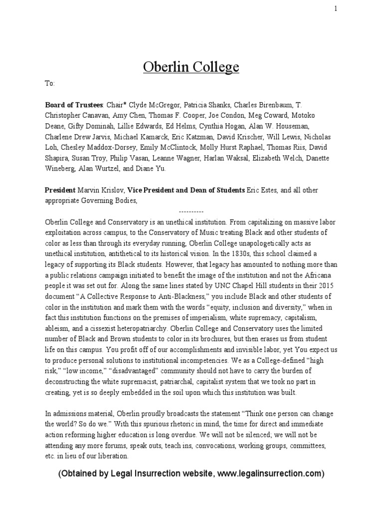 1. WeDEMANDthatOberlinCollegestopfunctioningasagentrifyinginstitutionby: