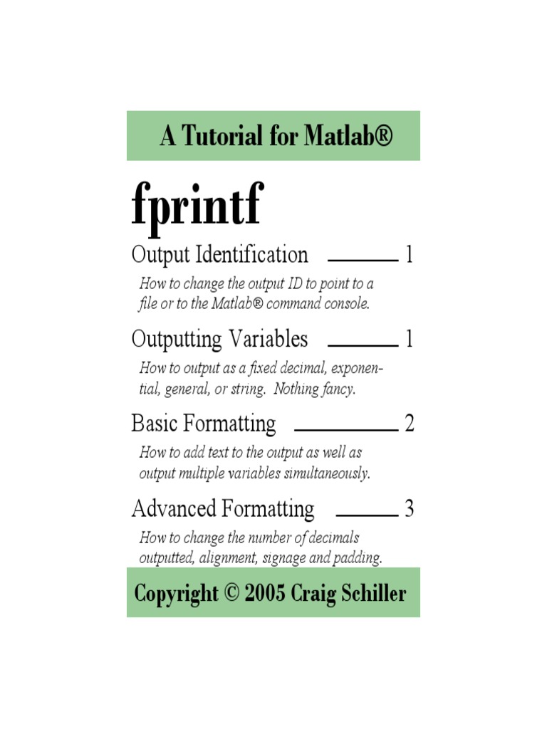 the most robust of these methods is fprintf. For this reason, fprintf will be the only output