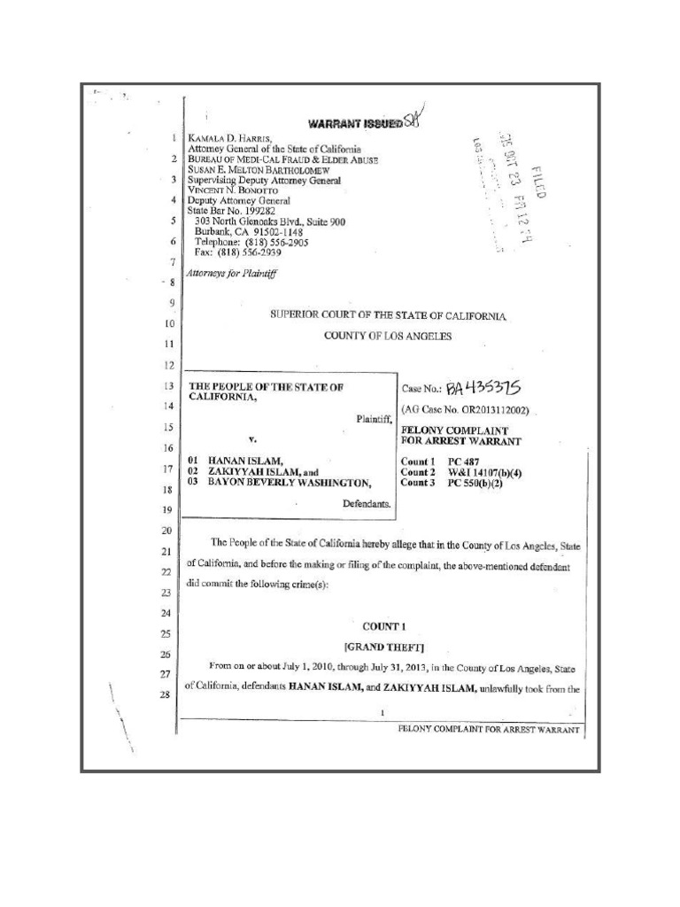 Charging documents for Hanan Islam and others for Medi-Cal fraud
