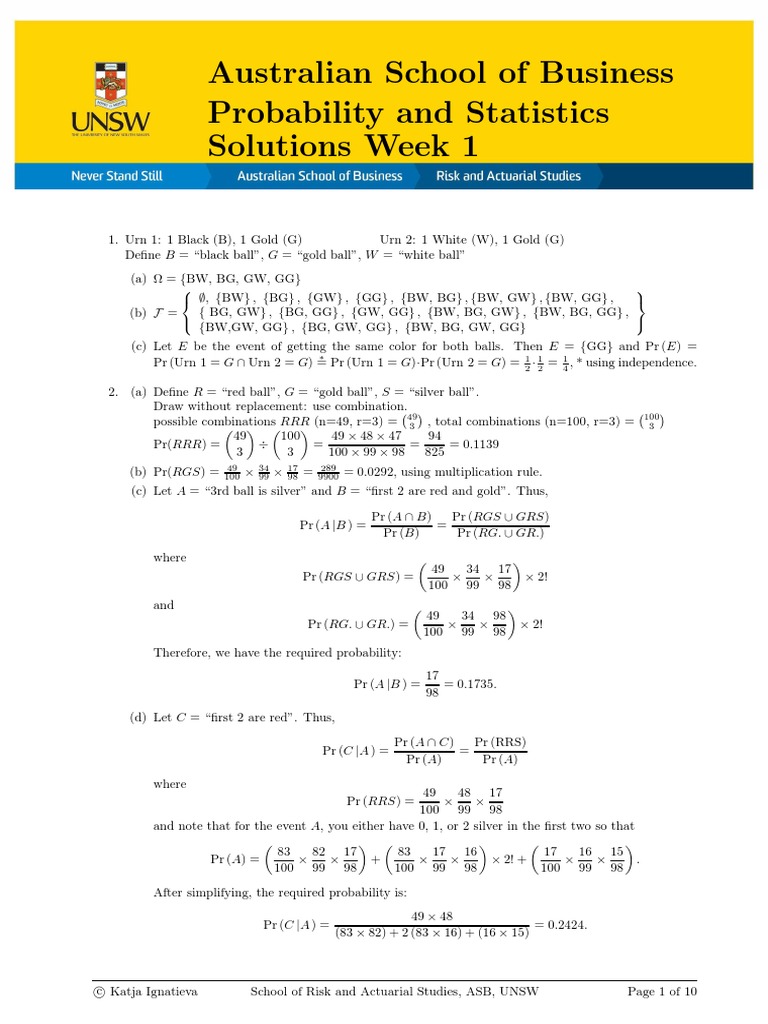Pr (Urn 1 = G Urn 2 = G) = Pr (Urn 1 = G)Pr (Urn 2 = G) = 12 12 = 41 , * using independence.