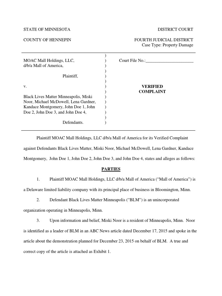 Mall of America Complaint