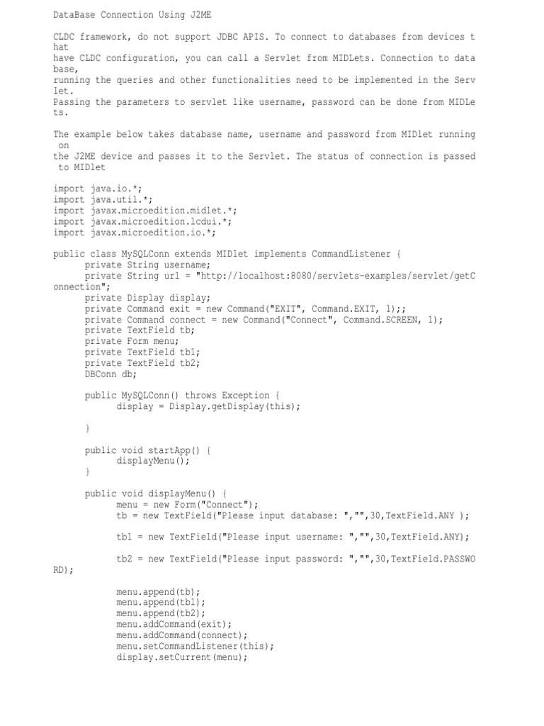 public class MySQLConn extends MIDlet implements CommandListener {