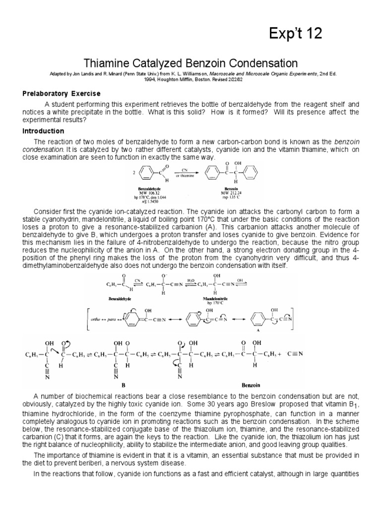 Adapted by Jon Landis and R. Minard (Penn State Univ.) from K. L. Williamson, Macroscale and Microscale Organic Experiments, 2nd Ed.