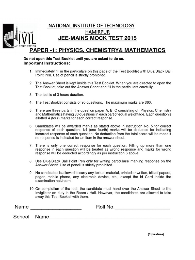 JEE-MAINS MOCK TEST 2015
