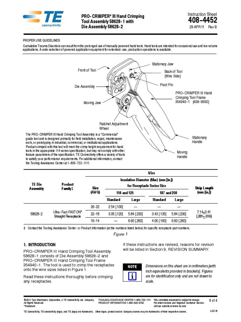 feature parameters of the specification. TE Connectivity offers a variety of tools