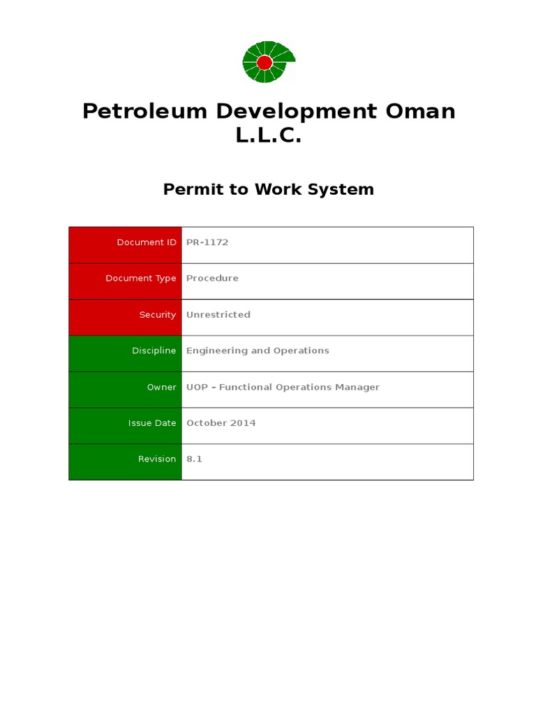 This document is the property of Petroleum Development Oman, LLC. Neither the whole