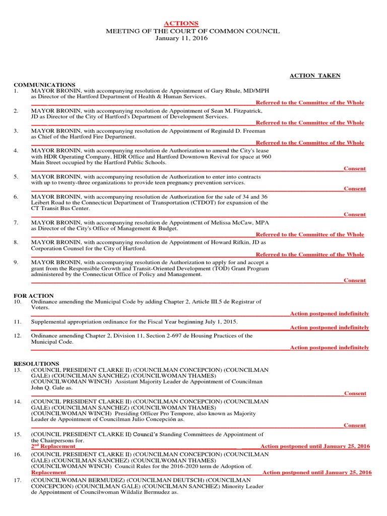 COUNCIL ACTIONS , SIXTO'S VERSION