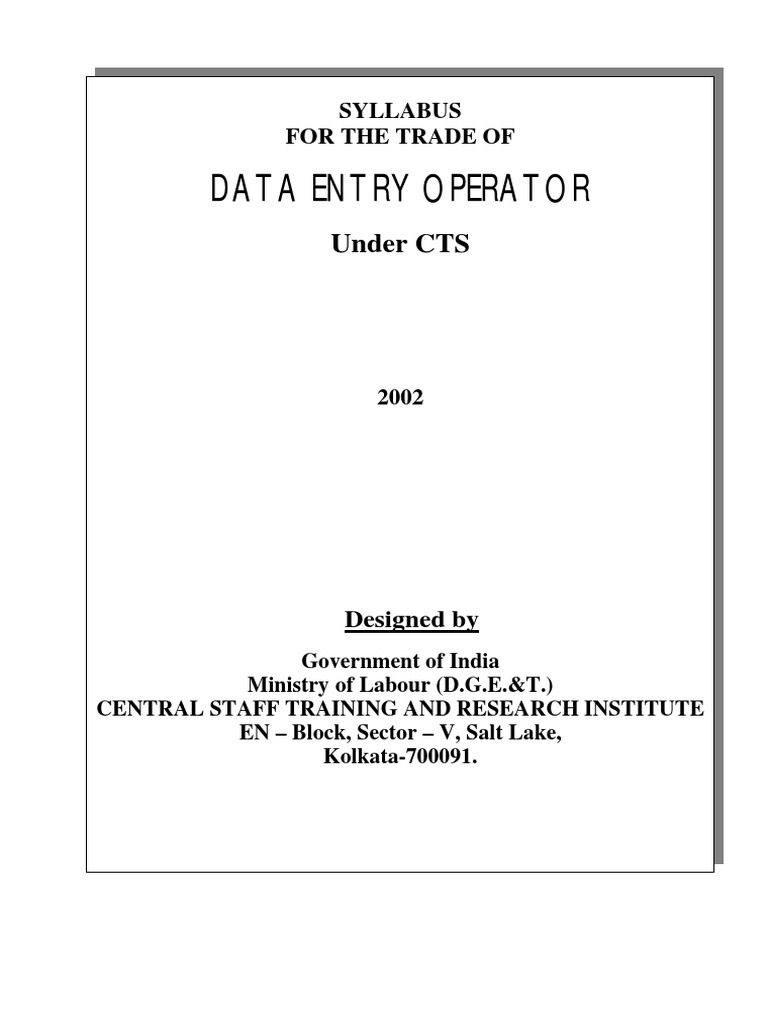 Syllabus for Data Entry Operator Under Craftsmen Training Scheme