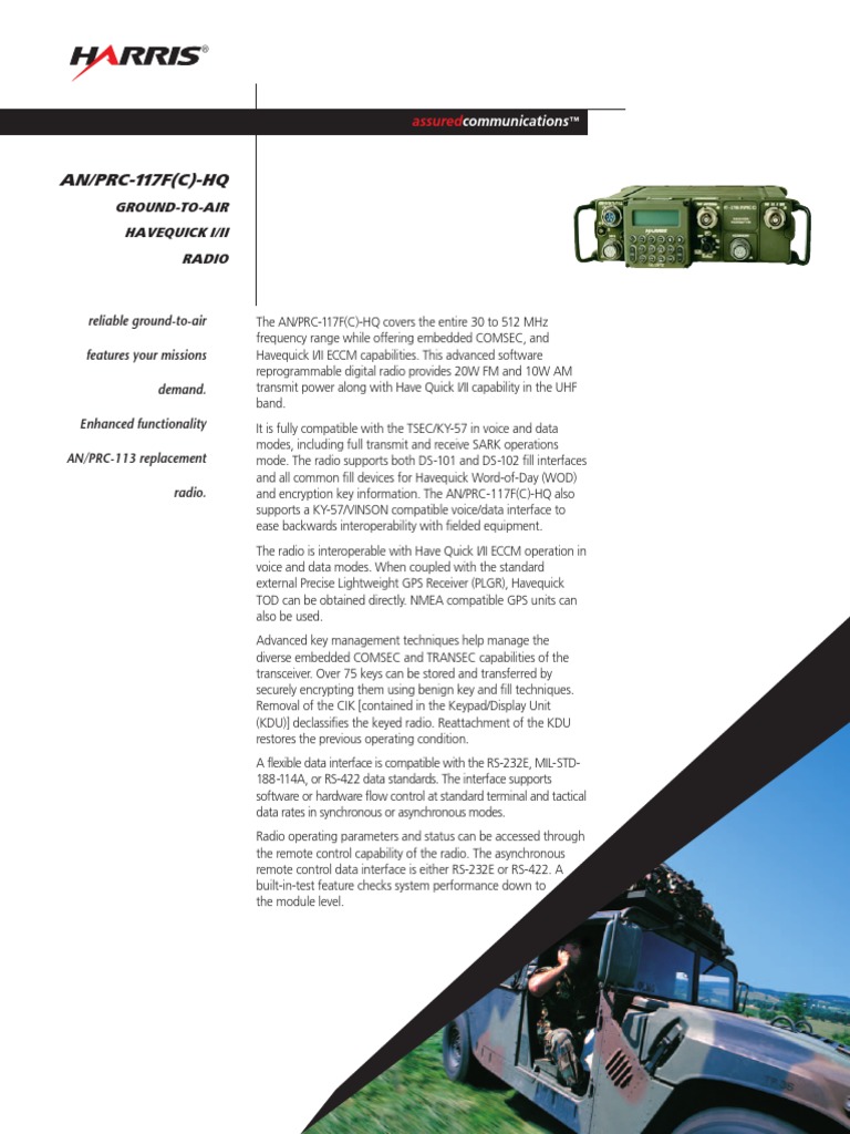 and encryption key information. The AN/PRC-117F(C)-HQ also