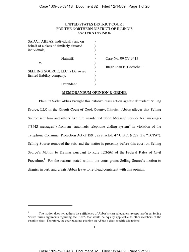 Selling Source maintains is required to state a claim under the TCPA; (3) Abbas has