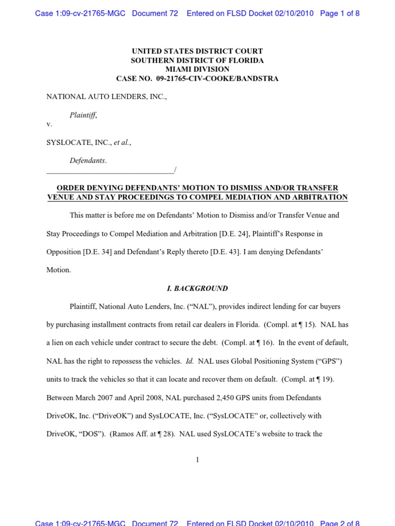 DriveOK, “DOS”). (Ramos Aff. at ¶ 28). NAL used SysLOCATE’s website to track the