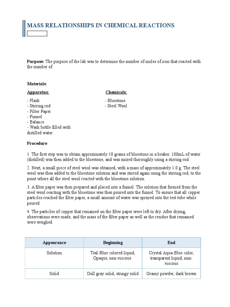 MASS RELATIONSHIPS IN CHEMICAL REACTIONS