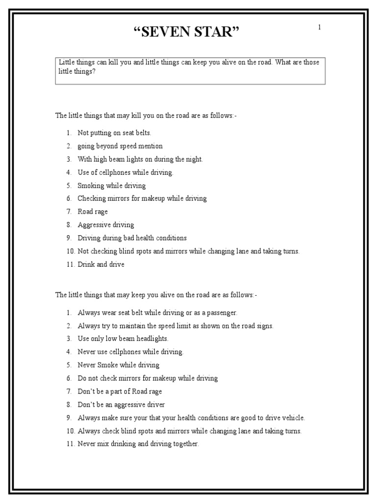 The little things that may keep you alive on the road are as follows:1. Always wear seat belt while driving or as a passenger.