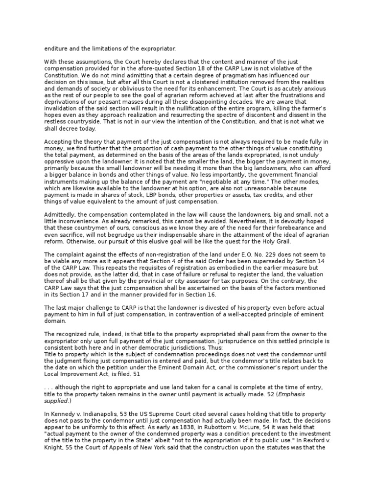 The last major challenge to CARP is that the landowner is divested of his property even before actual