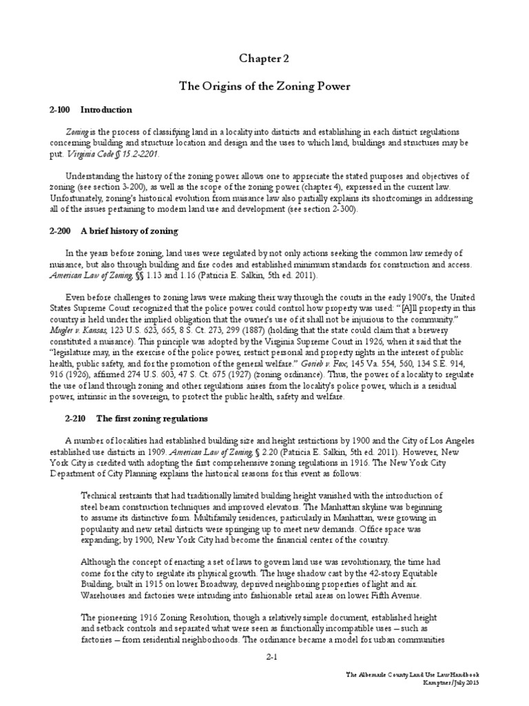 This examination of the history of zoning provides the context for much of the remainder of this handbook
