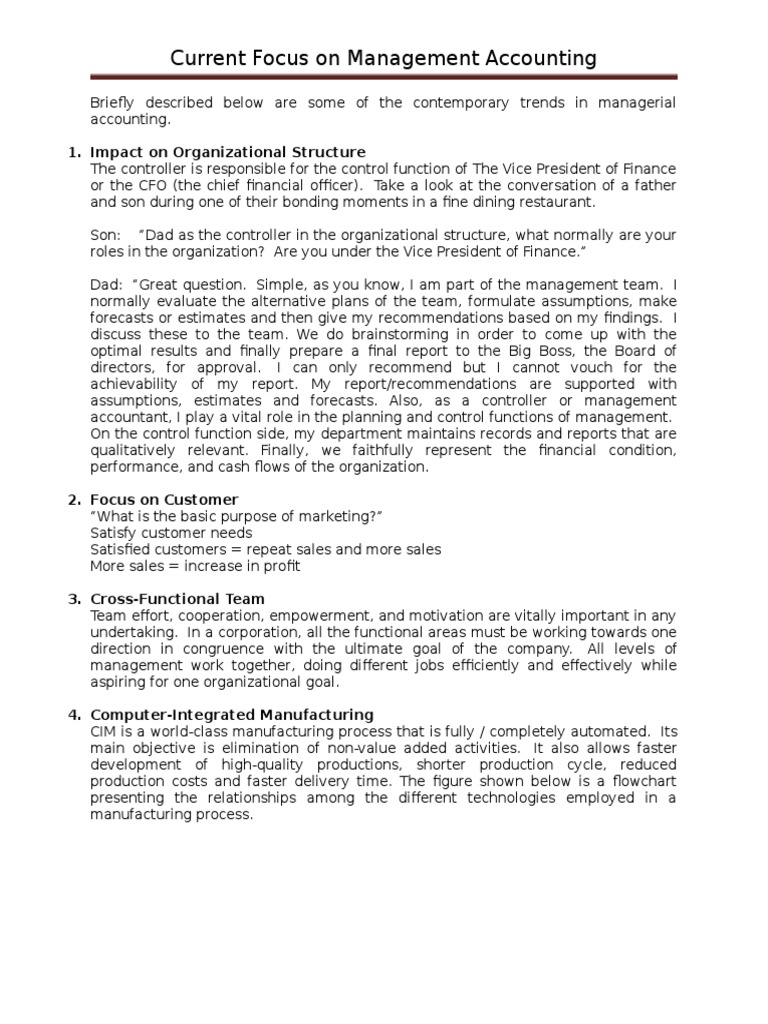 Current Focus on Management Accounting
