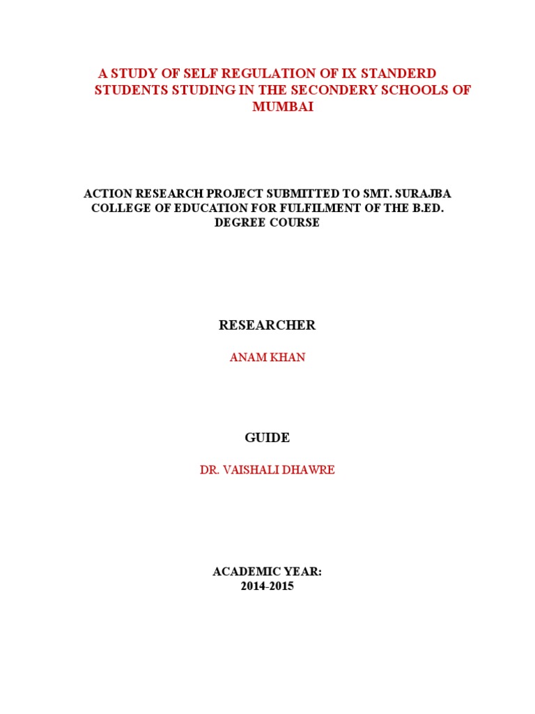 This is to certify that the research project A STUDY OF SELF REGULATION