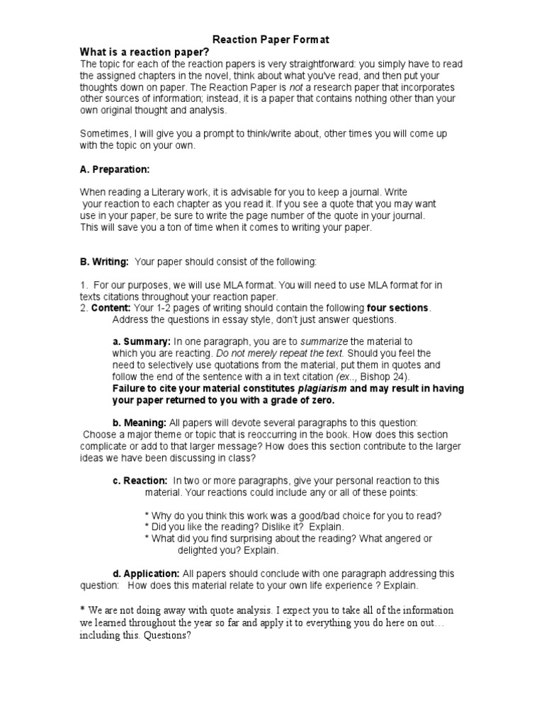 thoughts down on paper. The Reaction Paper is not a research paper that incorporates