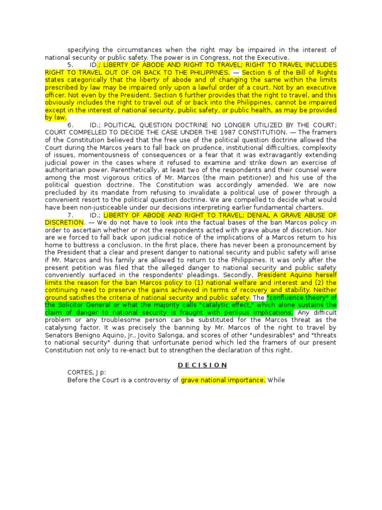 obviously includes the right to travel out of or back into the Philippines, cannot be impaired