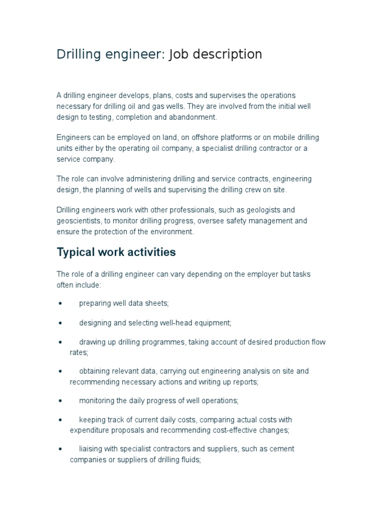 Drilling engineer: Job description