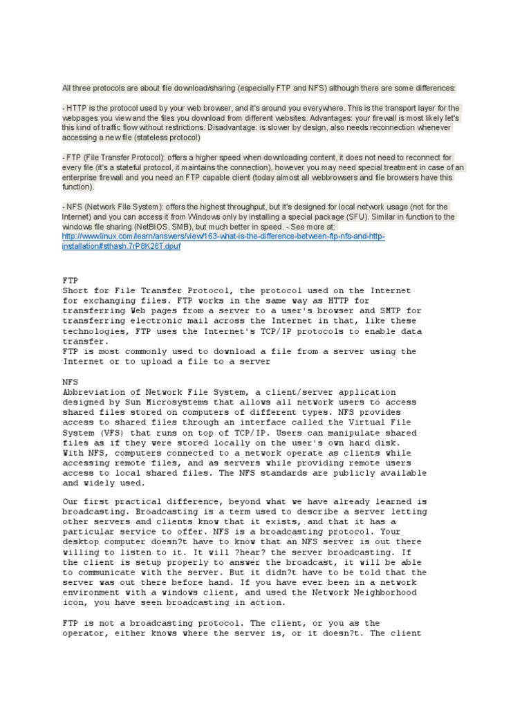 http://www.linux.com/learn/answers/view/163-what-is-the-difference-between-ftp-nfs-and-httpinstallation#sthash.7rP8K26T.dpuf