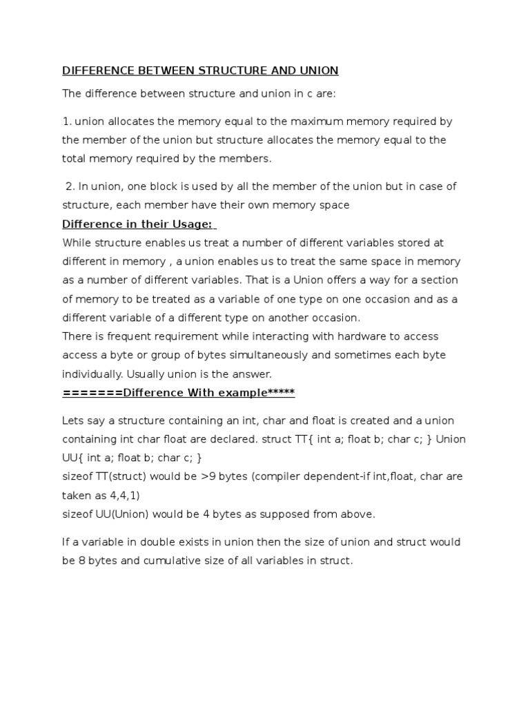 DIFFERENCE BETWEEN STRUCTURE AND UNION